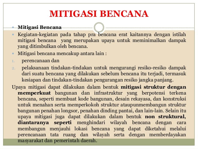 Apa yang dimaksud dengan mitigasi bencana alam? Jelaskan! - Brainly.co.id