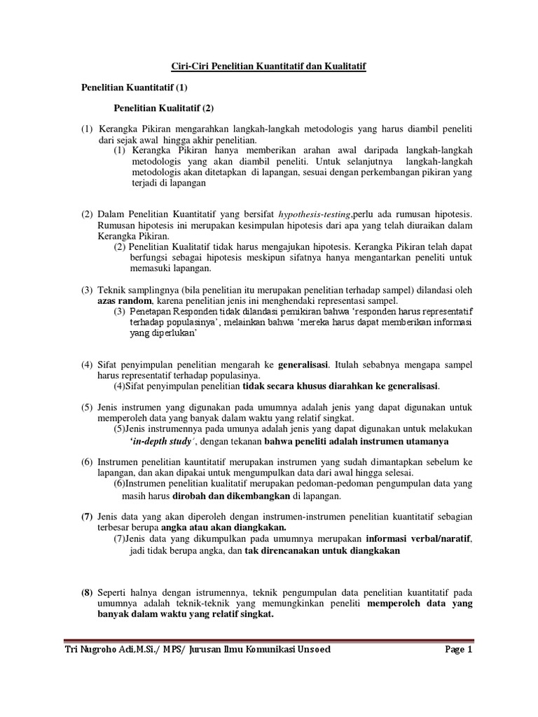 Pengertian, Perbedaan, CIRI2 Kualitatif & Kuantitatif - StuDocu