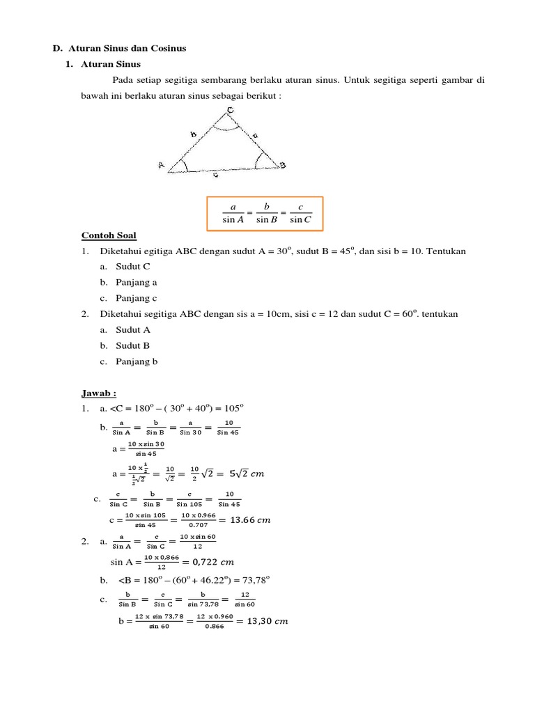 Contoh Soal Aturan Sinus Dan Cosinus Pada Trigonometri - Dapatkan Contoh