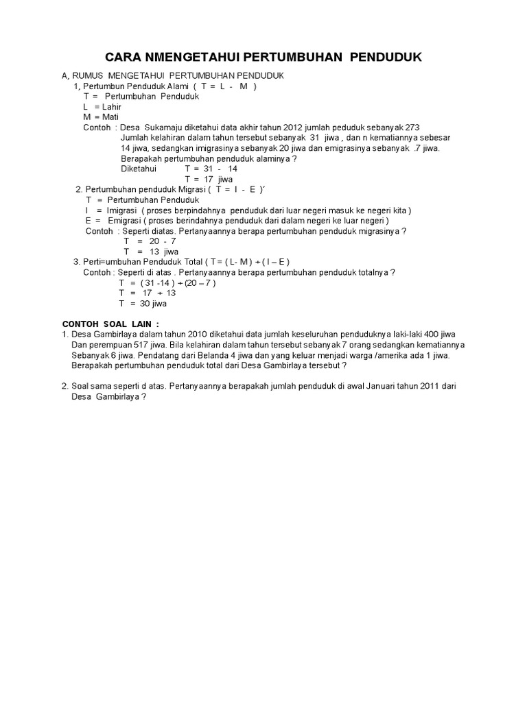 Contoh Soal Pertumbuhan Penduduk Total Beserta Jawabannya …