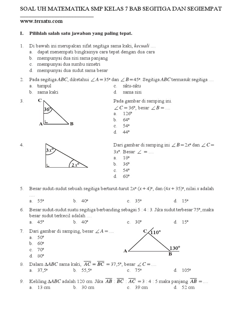 Contoh Soal Segitiga Dan Segiempat Serta Jawabannya Kelas 7 - Contoh Soal Terbaru
