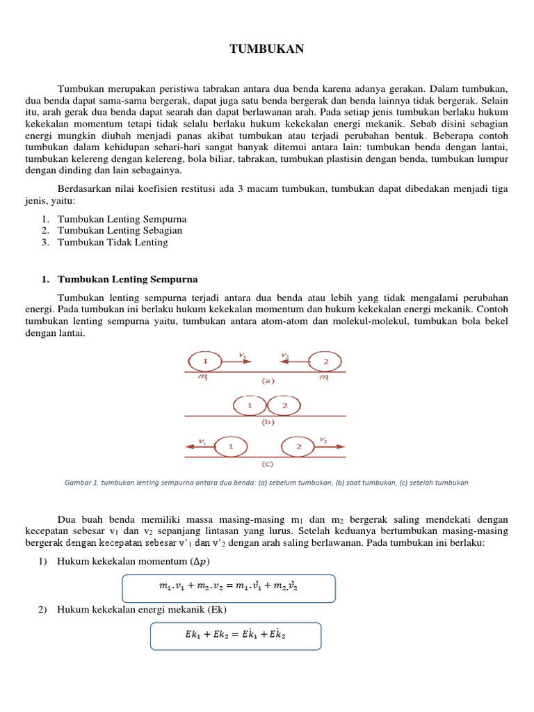 Jenis-jenis Tumbukan (lenting Sempurna, Sebagian dan Tidak Sama …
