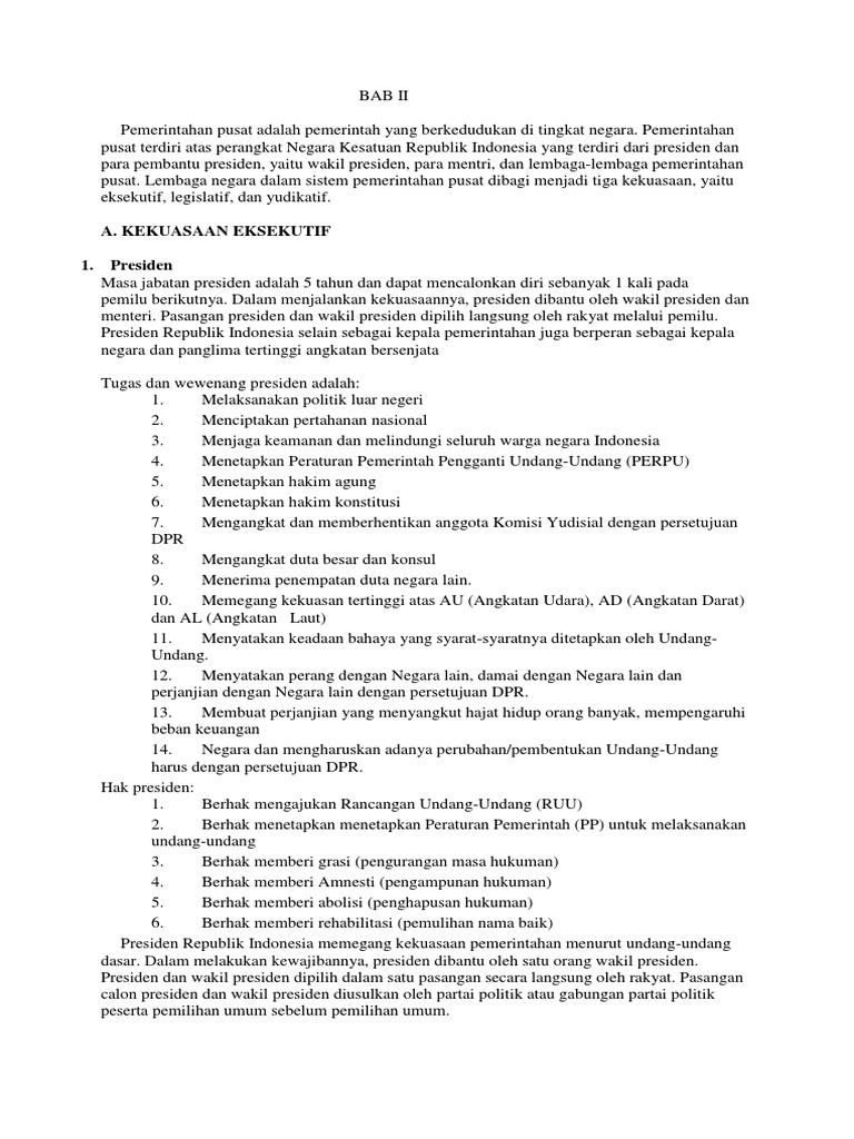 Wewenang dan Tugas Presiden Negara Kesatuan Republik Indonesia …