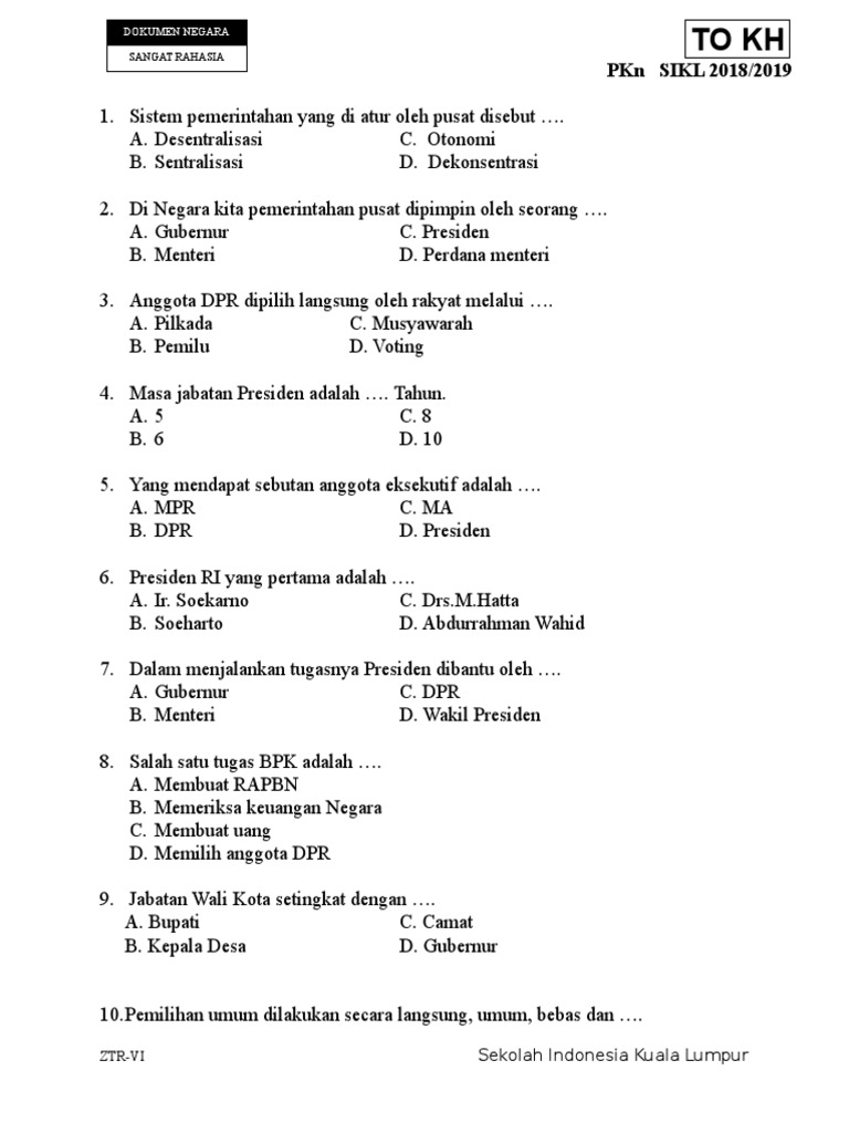50 Soal Sejarah Sistem Pemerintahan Negara Indonesia, Jawaban …