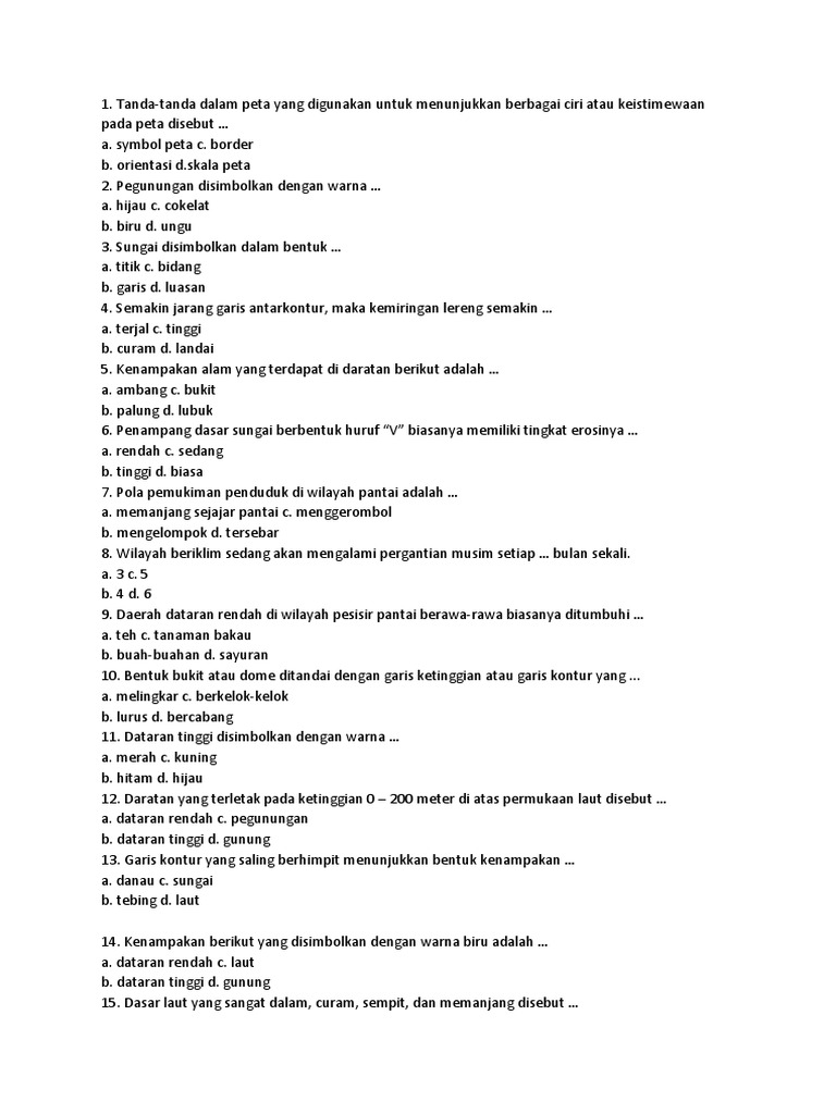Profil Relief Daratan dan Dasar Laut - Soal Ipa Ips