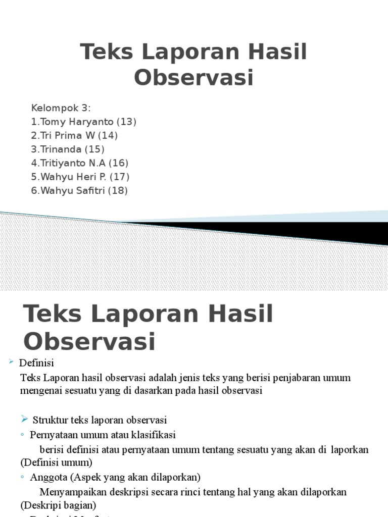 TEKS LAPORAN HASIL OBSERVASI - ppt download