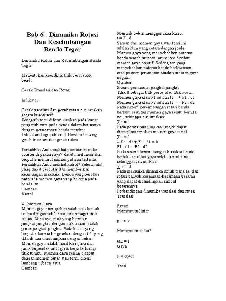 DINAMIKA ROTASI DAN KESETIMBANGAN BENDA TEGAR - PDF Free Download