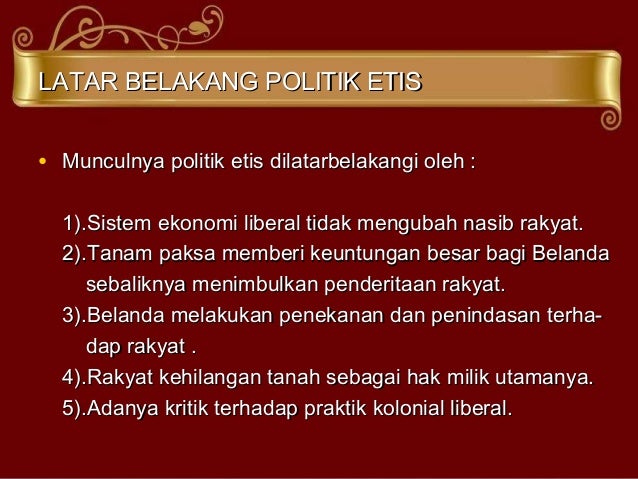 Jelaskan isi dan tujuan politik etis - Brainly.co.id
