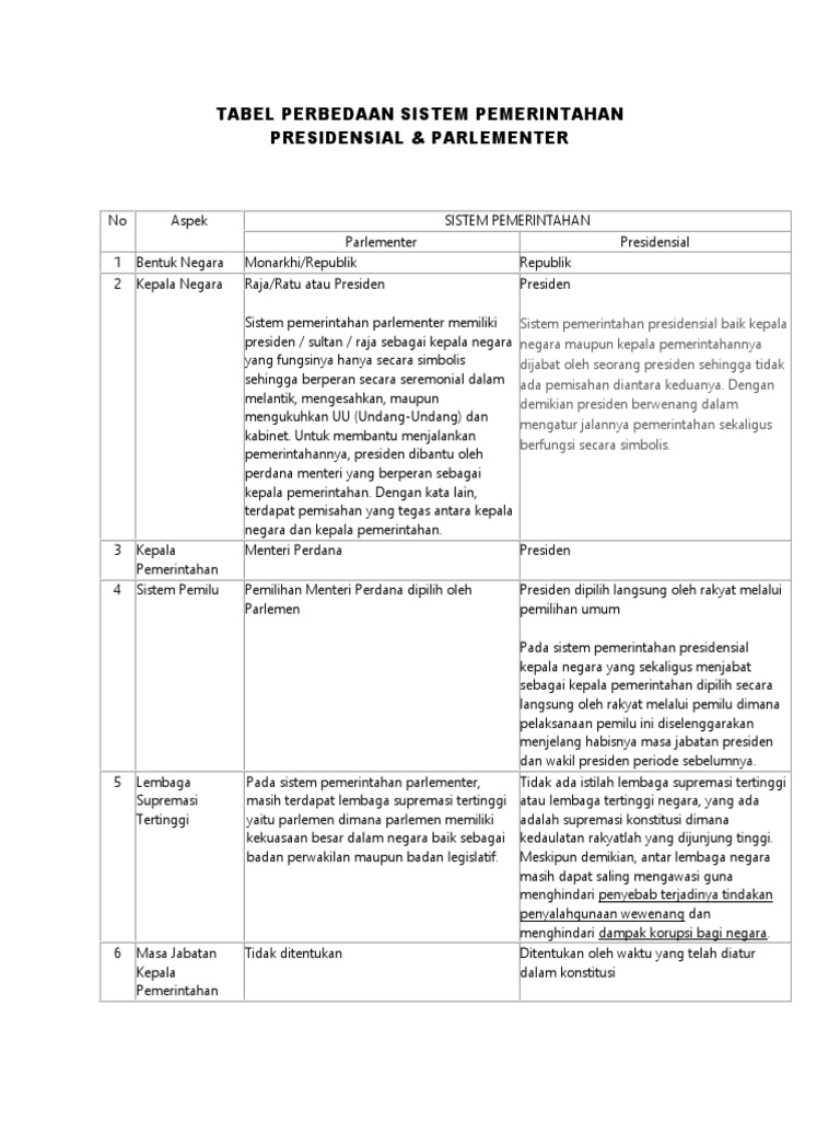 jelaskan persamaan dan perbedaan sistem pemerintahan parlementer …