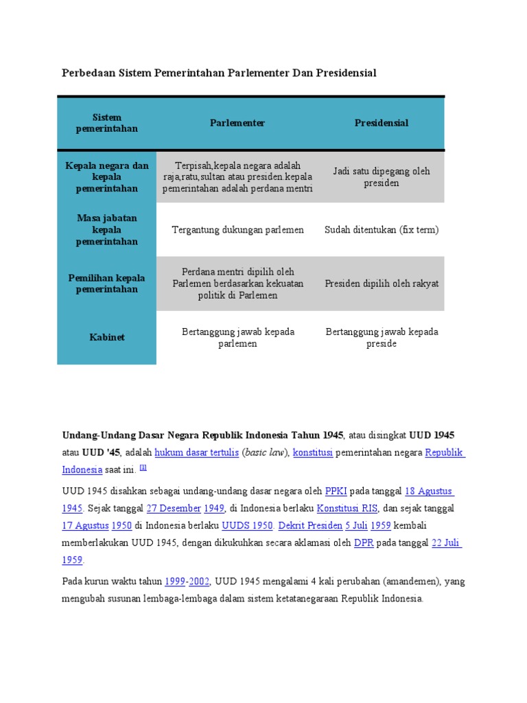 Apa perbedaan antara sistem pemerintahan parlementer dan …