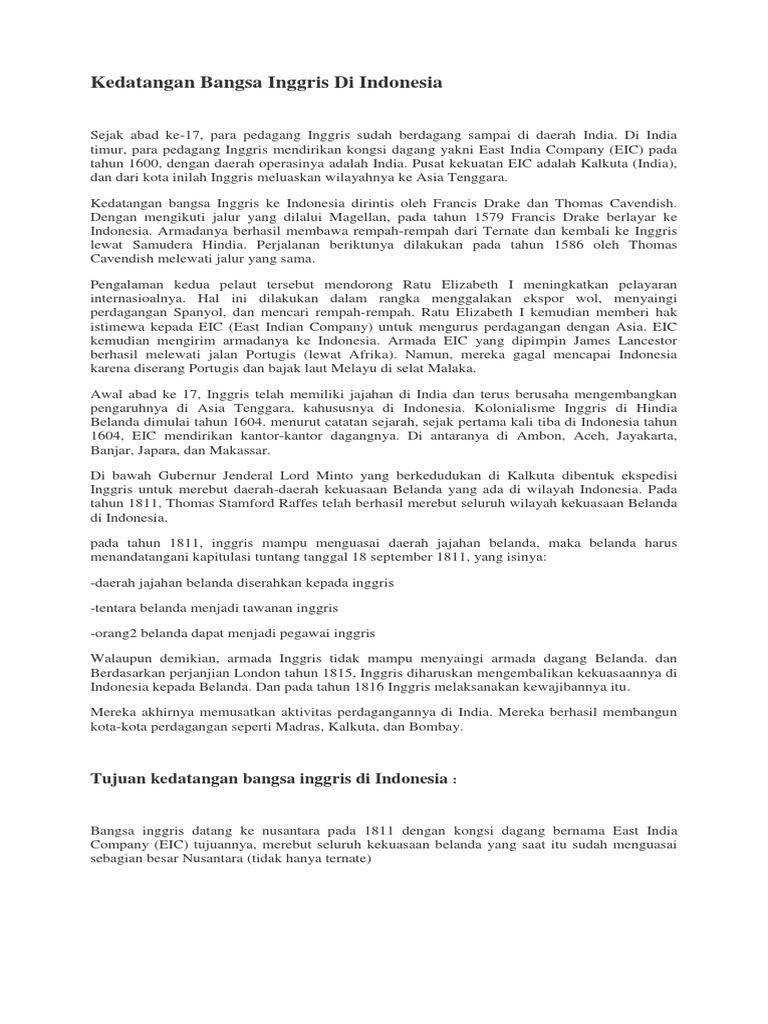Kedatangan Bangsa Inggris Di Indonesia - [DOCX Document]