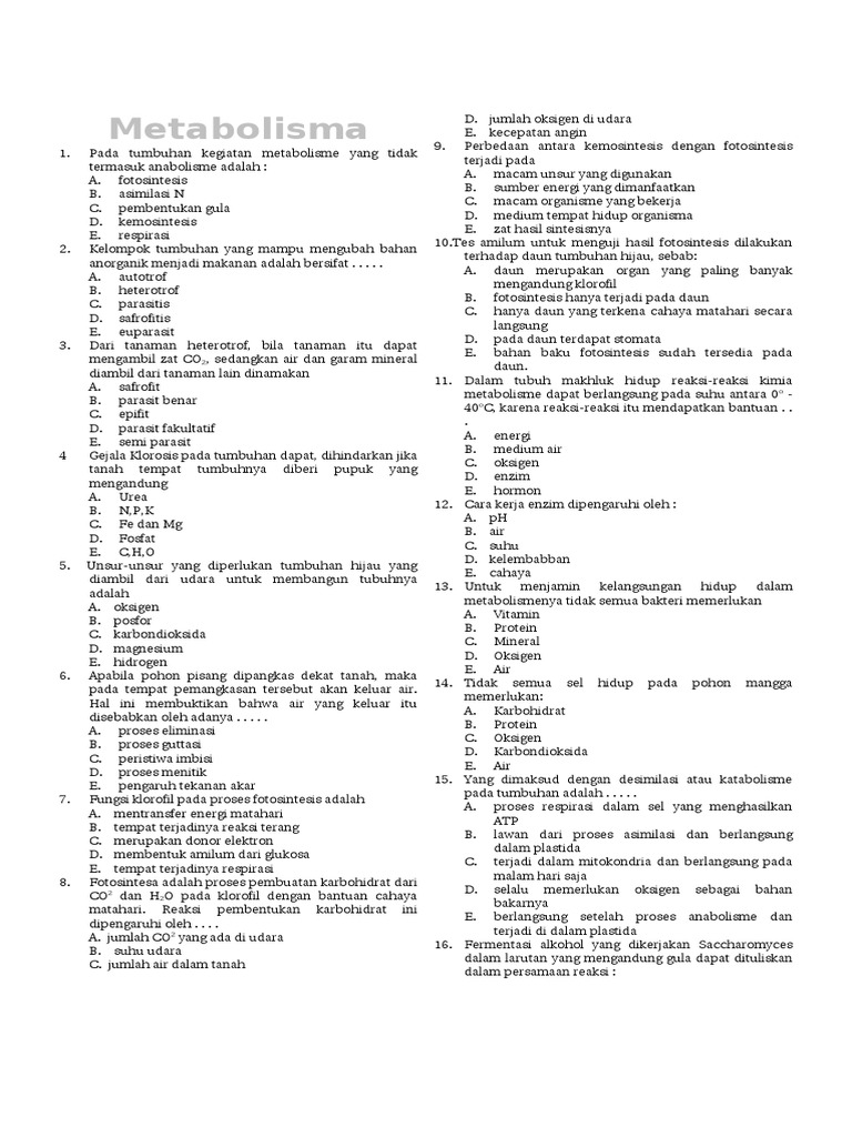 SOAl METABOLISME dan PEMBAHASAN.doc - [DOC Document]