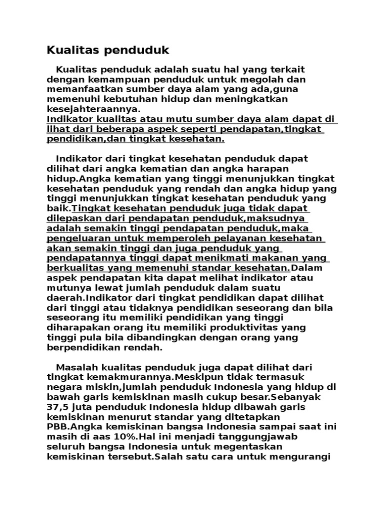 Pengertian Kualitas Penduduk