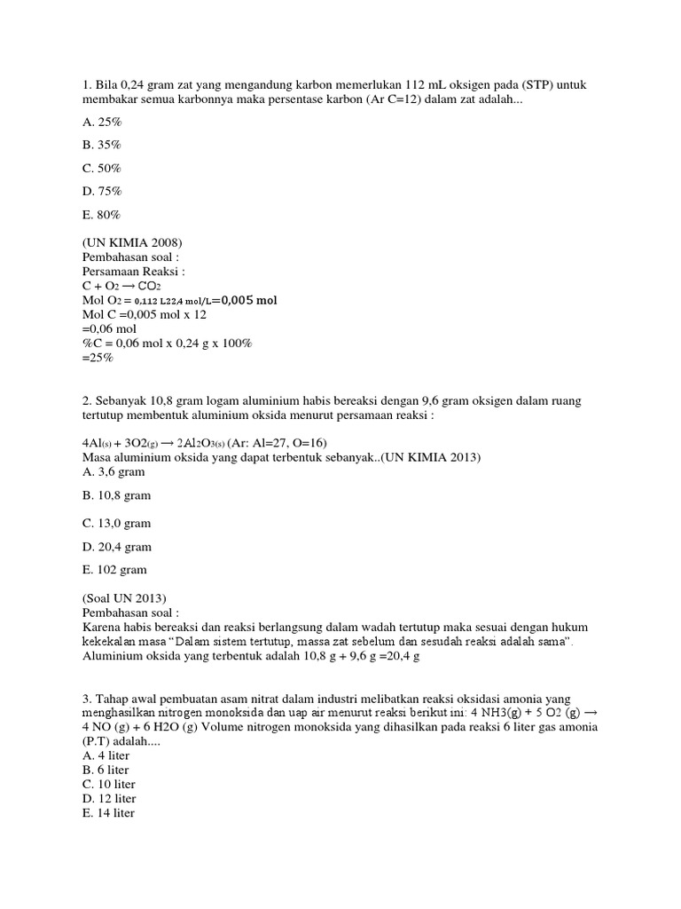 Contoh Soal Un Kimia Sma Dan Pembahasannya - Dapatkan Contoh