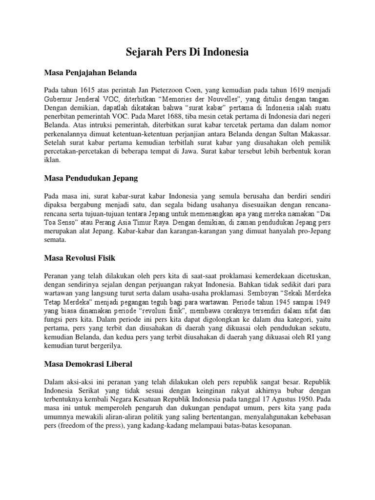 Sejarah dan Perkembangan Pers di Indonesia dan Dunia - Jurnalisme …