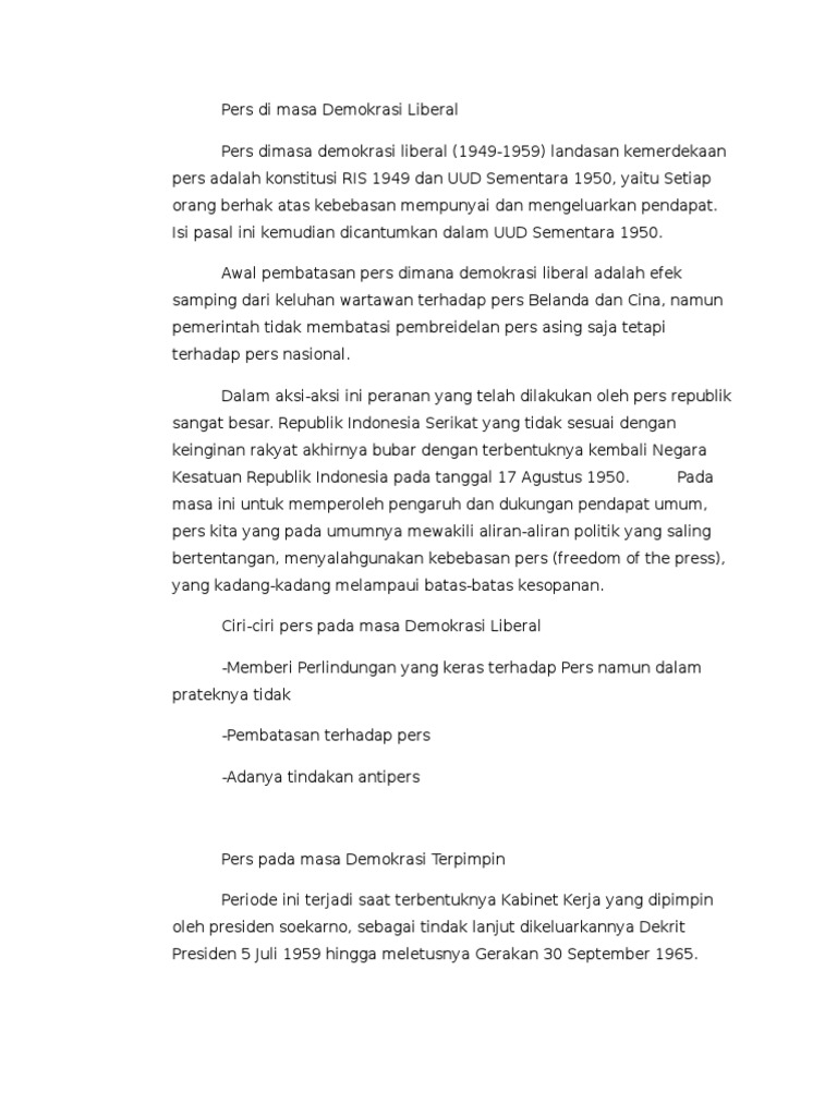 Makalahapalah: Sejarah Perkembangan Pers Demokrasi Liberal