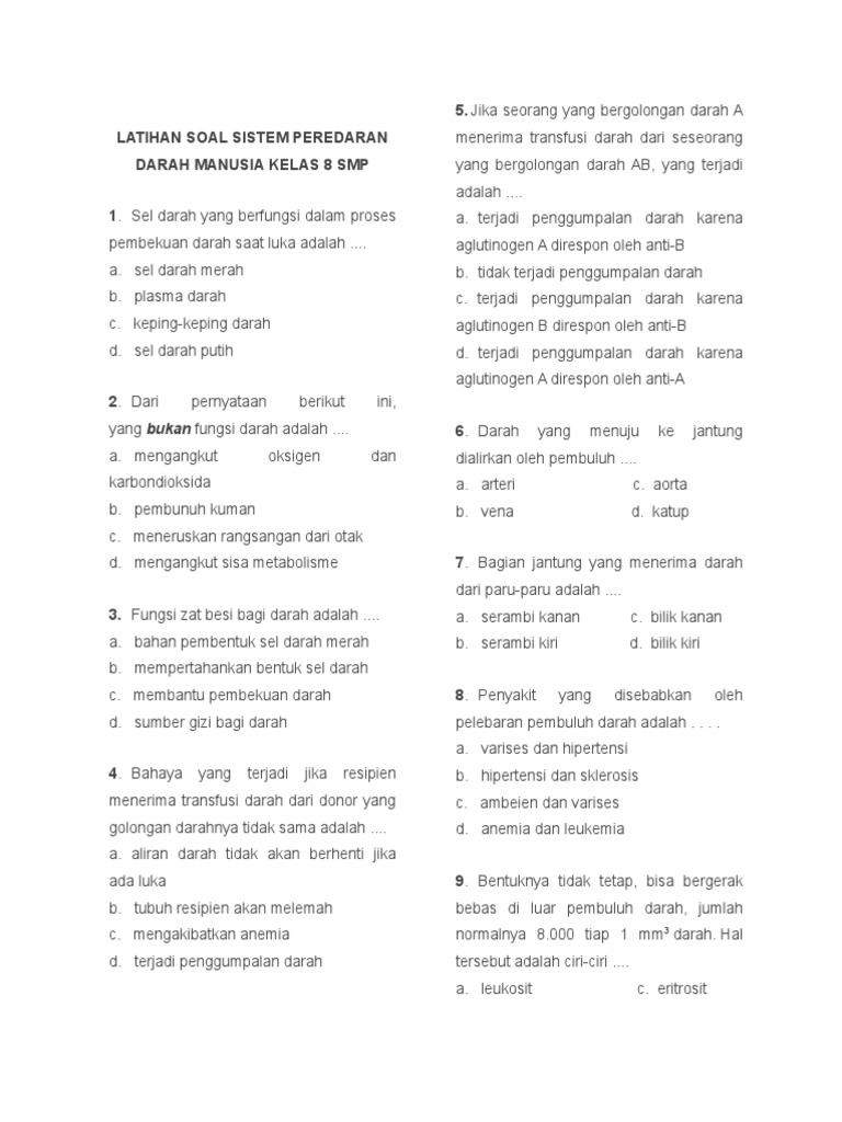 Soal Sistem Peredaran Darah Kelas 8 dan Kunci Jawaban - Muttaqin id