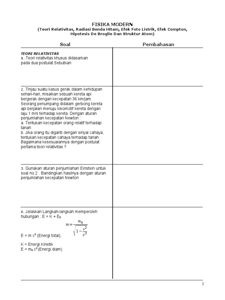 FISIKA MODERN 2020 (Soal Pembahasan)