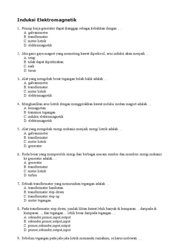 Soal Induksi Elektromagnetik Kelas 12 Pdf