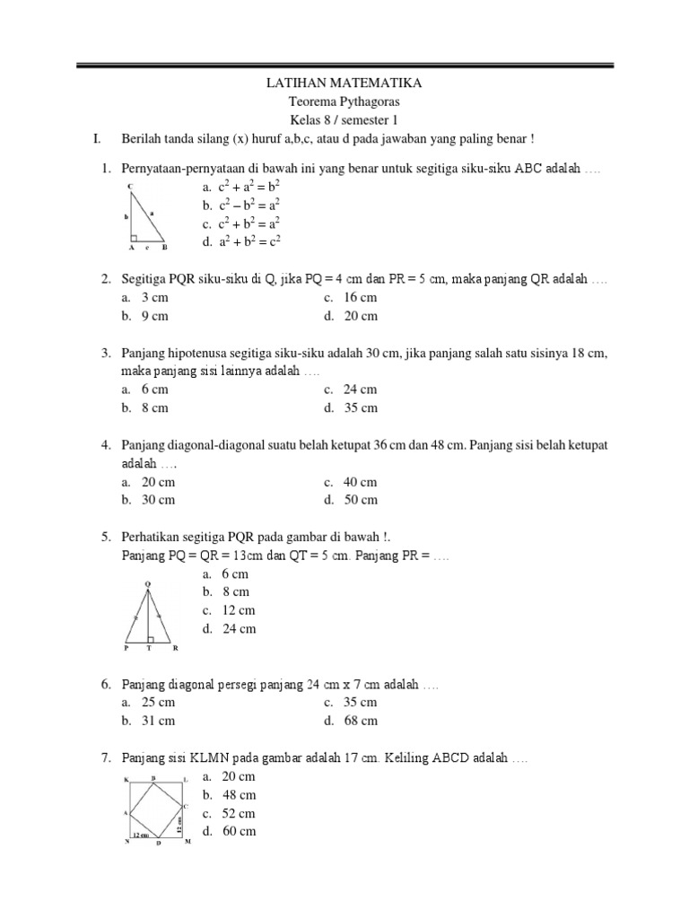 Kumpulan Soal Teorema Pythagoras Smp Kelas 8 Dan Jawaban - Peranti …