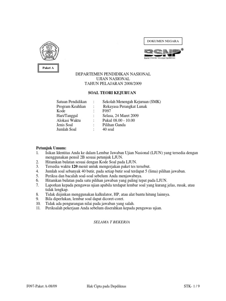 Soal Teori Kejuruan Rpl 2016 Dan Pembahasan