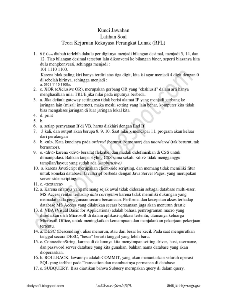 Kumpulan Soal Ujian Teori Kejuruan RPL Beserta Jawaban. - INDO …