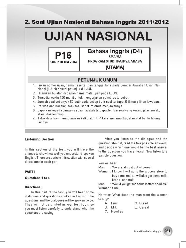 Gambar Asli Soal Listening UN Bahasa Inggris SMA 2012 | PELAJARAN …