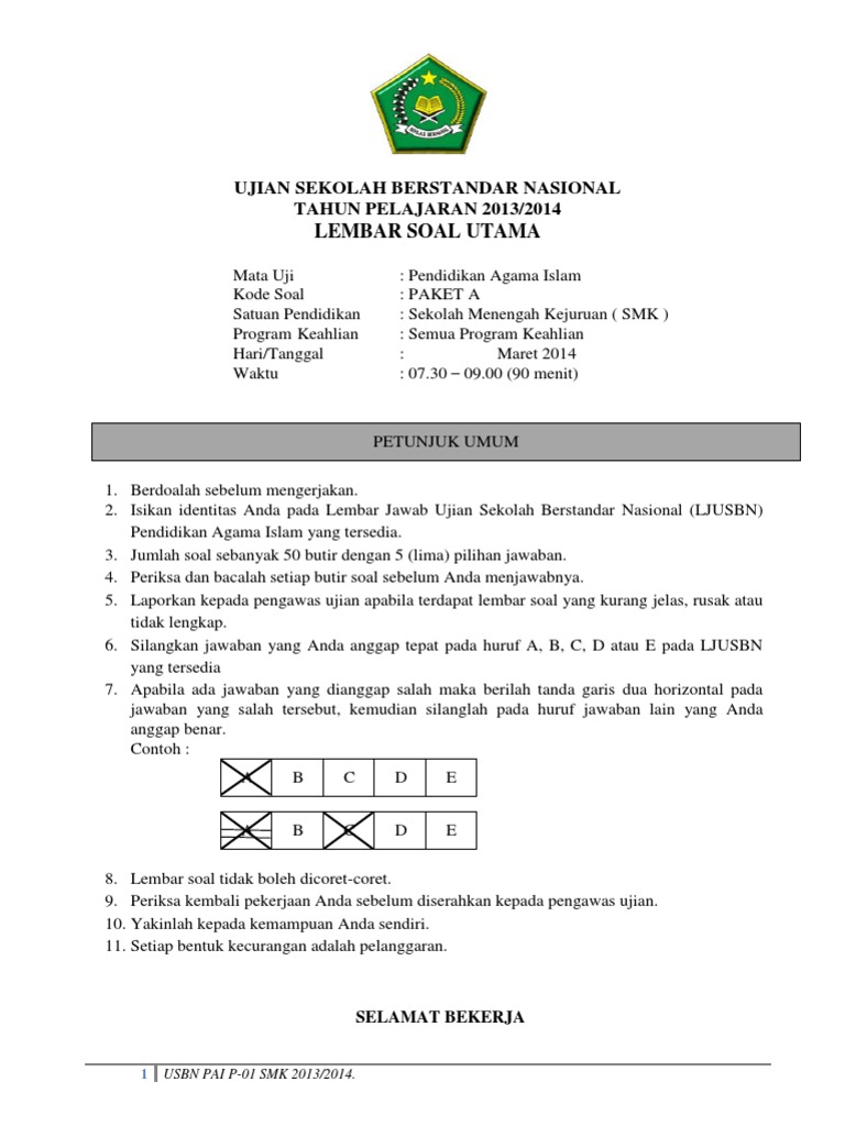 Soal Dan Kunci Jawaban Usbn Pai Smk 2017 - Guru Galeri