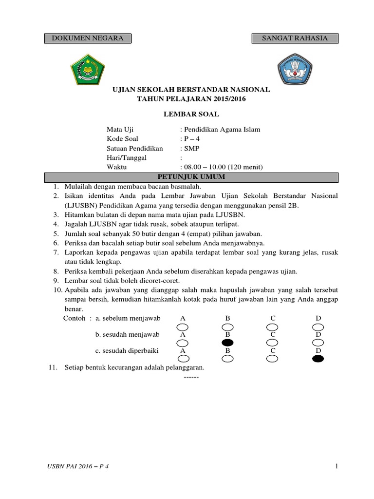 Contoh Soal Usbn Pai Smp Kurikulum 2013 - Dapatkan Contoh