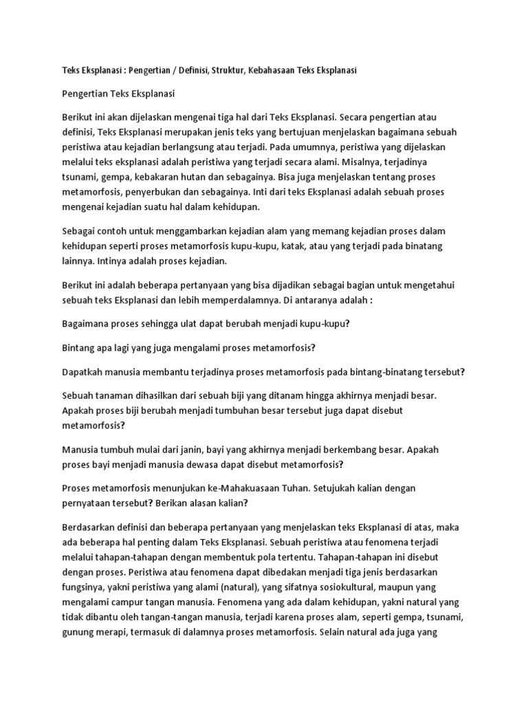 DOC) Teks Eksplanasi : Pengertian / Definisi, Struktur, Kebahasaan …