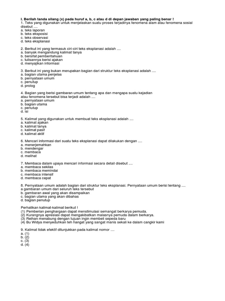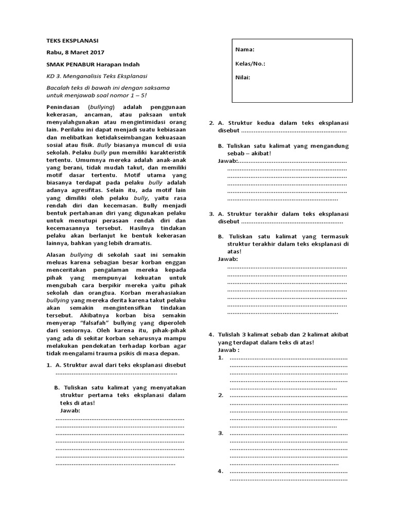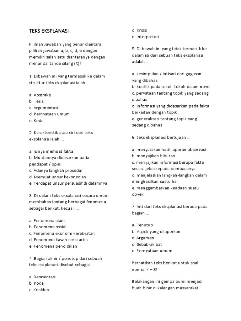 Soal dan Jawaban Teks Eksplanasi Kompleks - Evaluasi struktur isi …