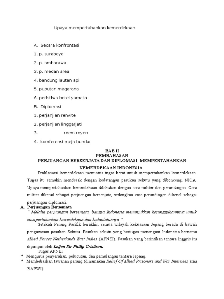 DOC) USAHA PERJUANGAN MEMPERTAHANKAN KEMERDEKAAN INDONESIA | Dia Malakaraya - Academia.edu