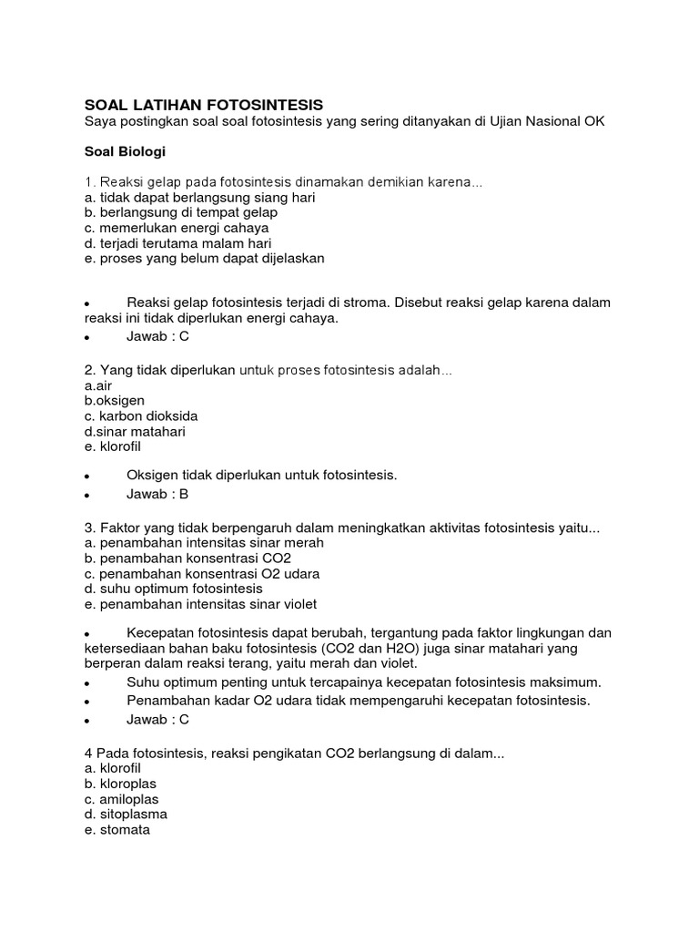 Soal dan Pembahasan Fotosintesis | Biologi | Hisham.id