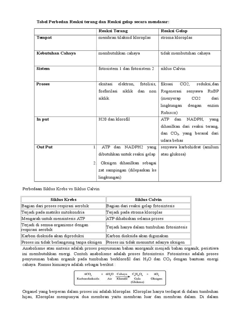 Tabel Perbedan Reaksi Terang Dan Reaksi Gelap Secara Mendasar