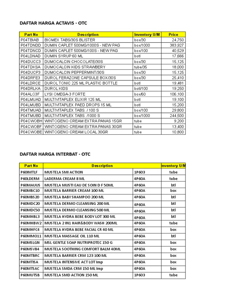 Daftar harga Lulur Kuning Nirmalasari Bulan Januari 2021