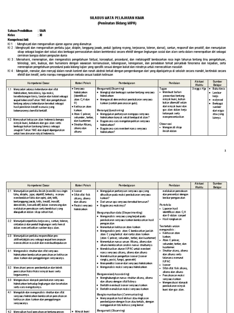 SILABUS KIMIA Kelas XI Sesuai Kurikulum 2013