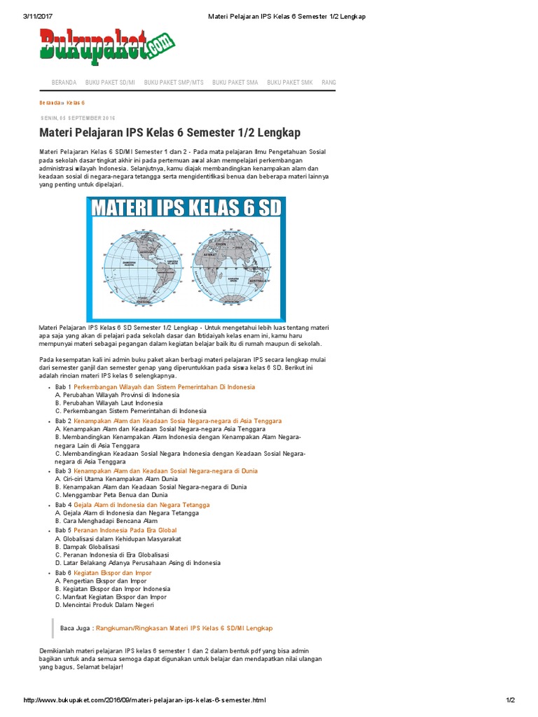 Materi Pelajaran IPS Dan Buku Referensi IPS Kelas 6 SD/MI | Otak …