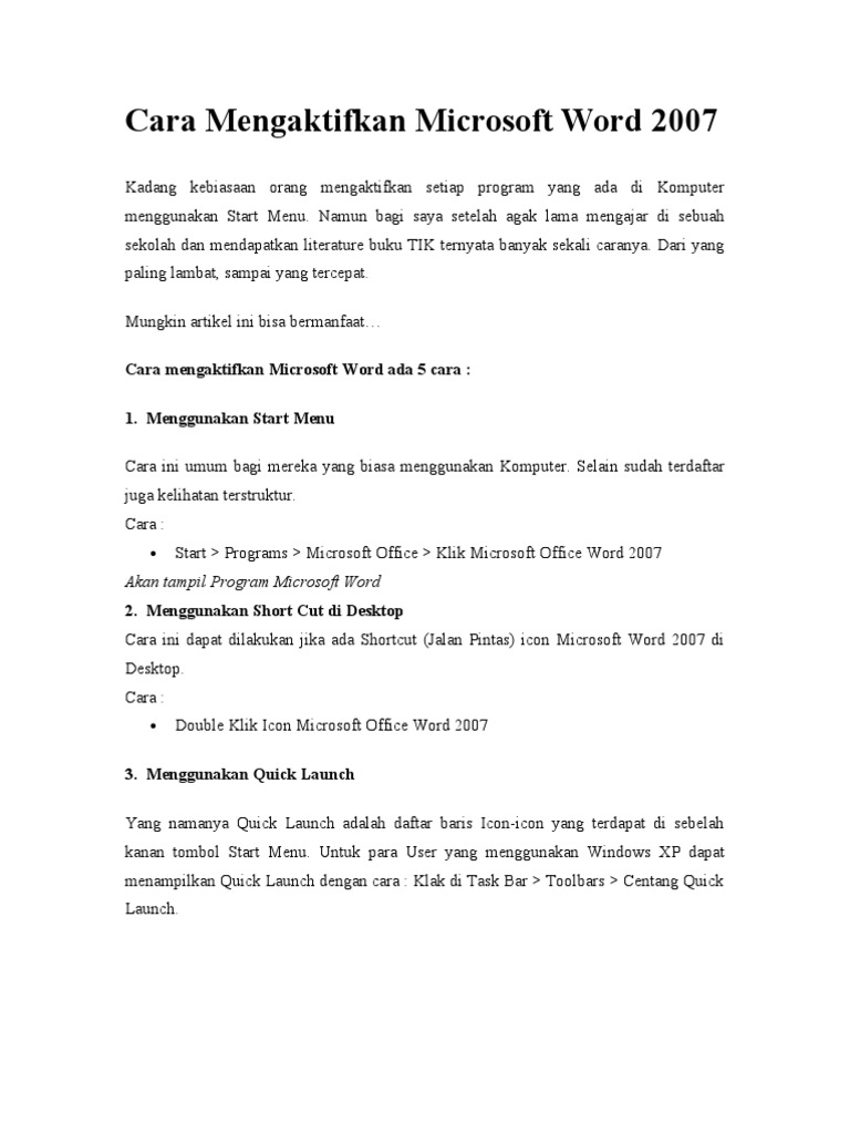 Jelaskan Cara Mengaktifkan Microsoft Word 2007