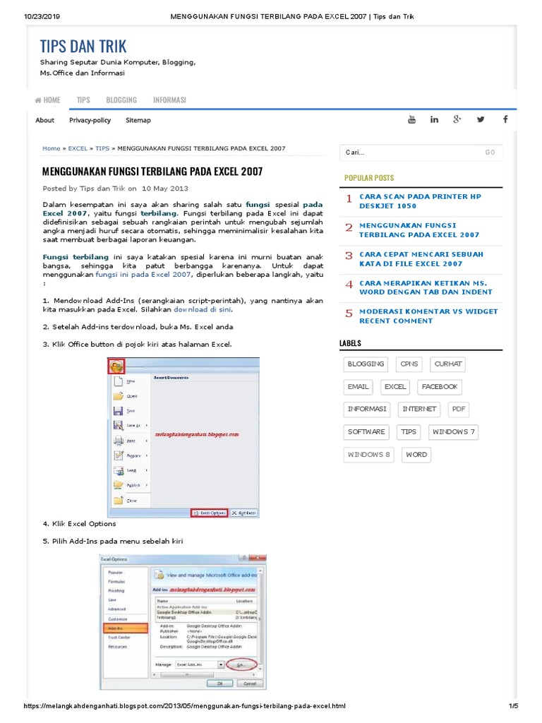 Download Add-In Fungsi Terbilang Excel Indonesia dan Inggris