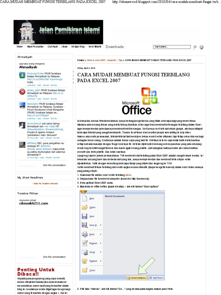 Tips Dan Trik: Menggunakan Fungsi Terbilang Pada Excel 2007