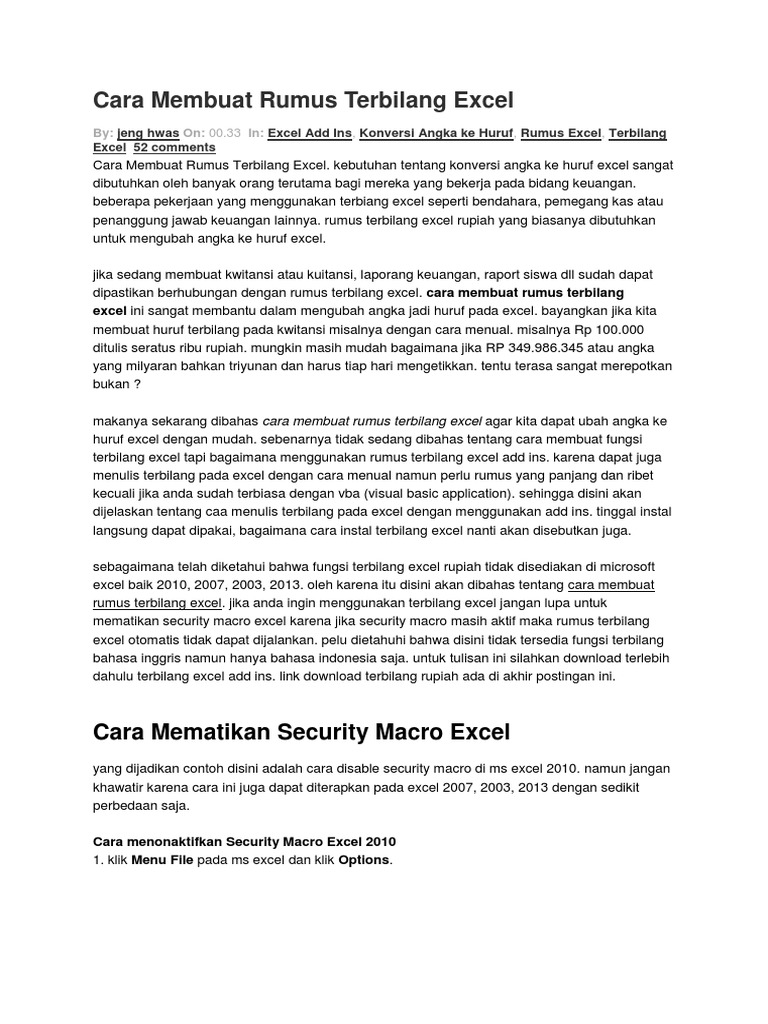Cara Membuat Sendiri Fungsi Terbilang di MS Excel ( 2003,2007,2010 …