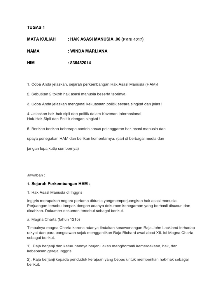 TUGAS 1 HAM.docx - 1 Coba Anda jelaskan sejarah perkembangan Hak …