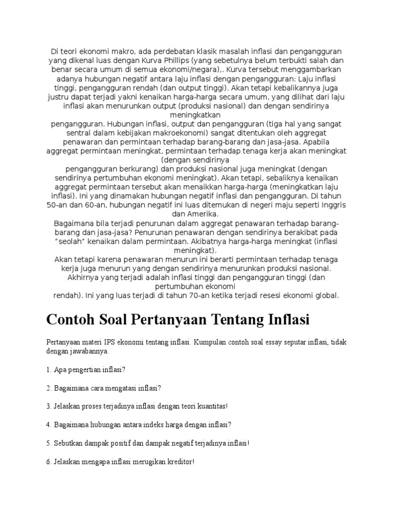 Contoh Soal Essay Indeks Harga Dan Inflasi Beserta Jawabannya …