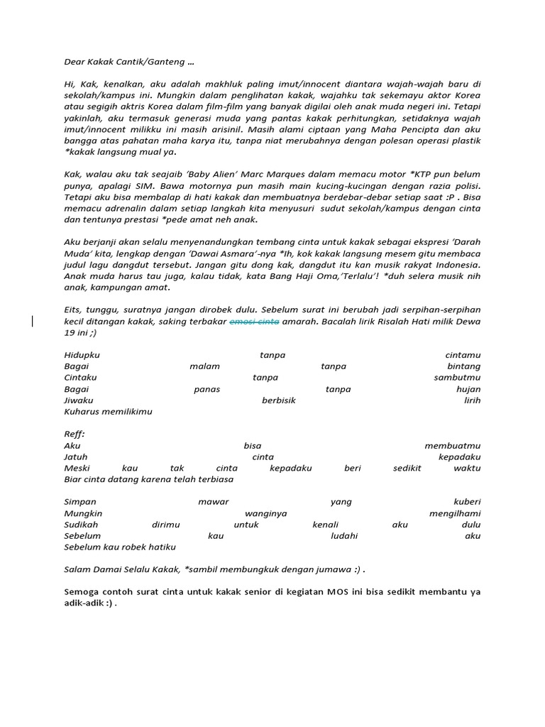 Contoh Surat Cinta Untuk Kakak Senior Ospek Cowok - Download Kumpulan Gambar