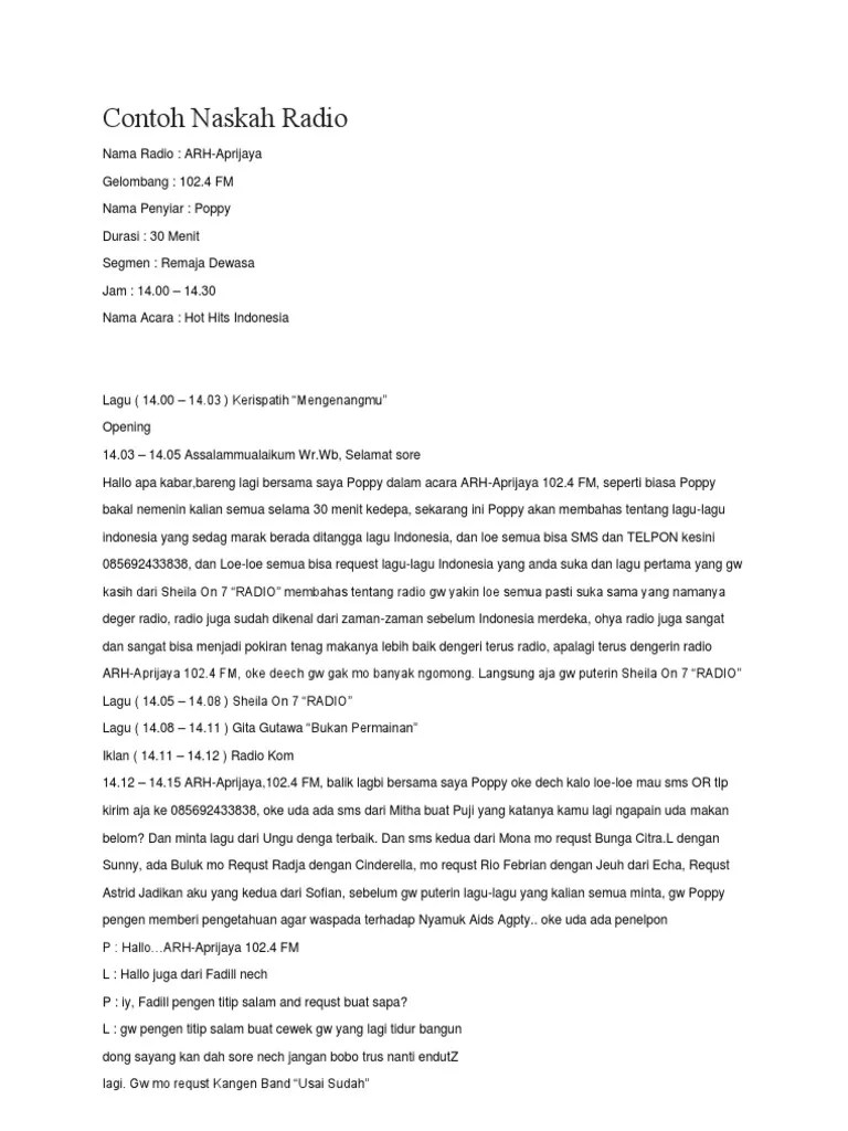 Contoh Naskah Siaran Radio Anak Muda Aneka Contoh - Cute766