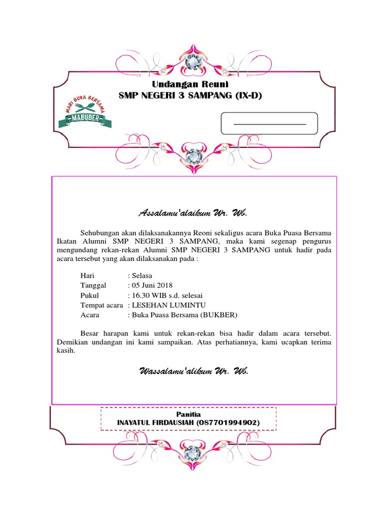 Contoh Surat Undangan Reunian Smp β Pigura