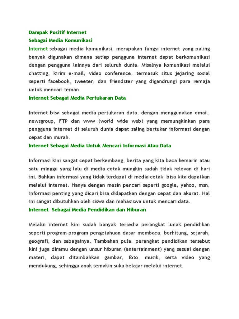 Dampak Positif dan Negatif Internet : dampak positif dan negatif …