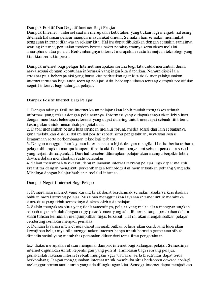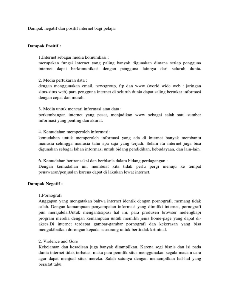DOC) DAMPAK POSITIF DAN NEGATIF INTERNET BAGI PELAJAR/SISWA …