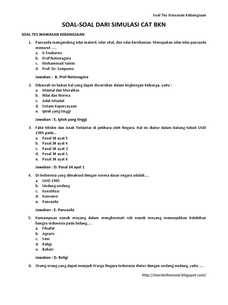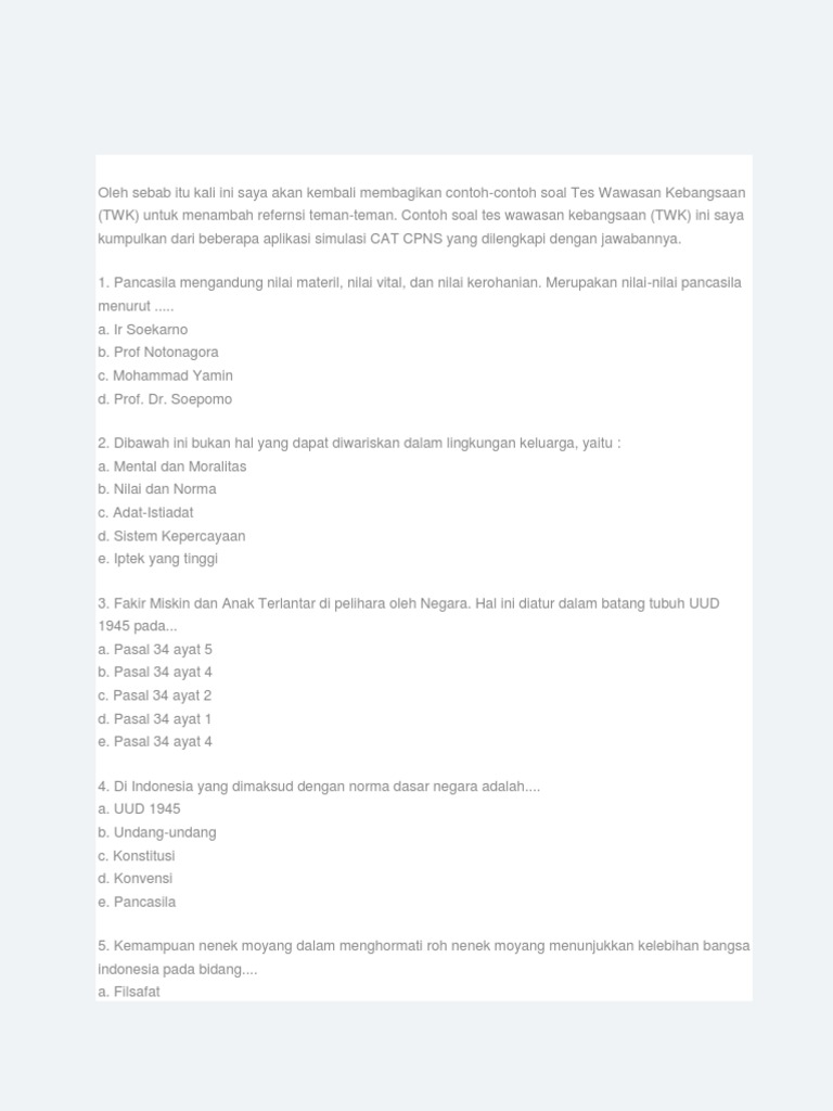Contoh Soal CPNS - Tes Wawasan Kebangsaan dan Jawabannya …