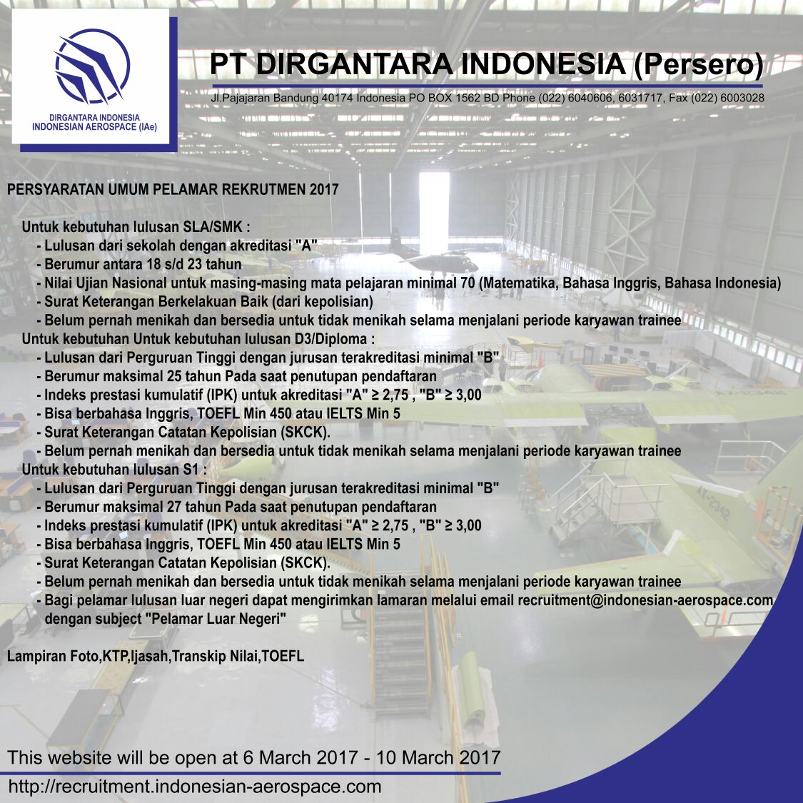 Lowongan Kerja PT Dirgantara Indonesia (Persero) Besar-Besaran Tahun 2017 - Rekrutmen Dan Lowongan Kerja Bulan Januari 2021